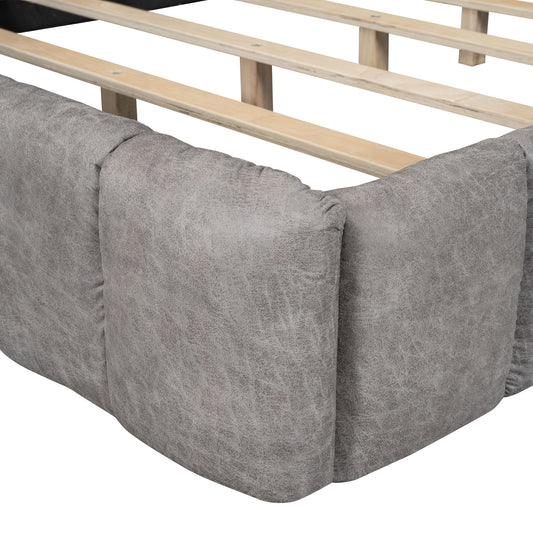 Luxury Upholstered Platform Bed With Oversized Padded Backrest And Solid Wood Frame