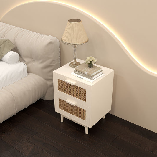 Nightstand With 2 Drawers, Storage Side Table For Bedroom - Antique Natural / Rattan