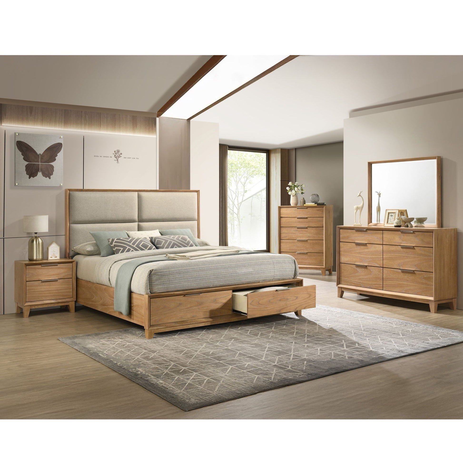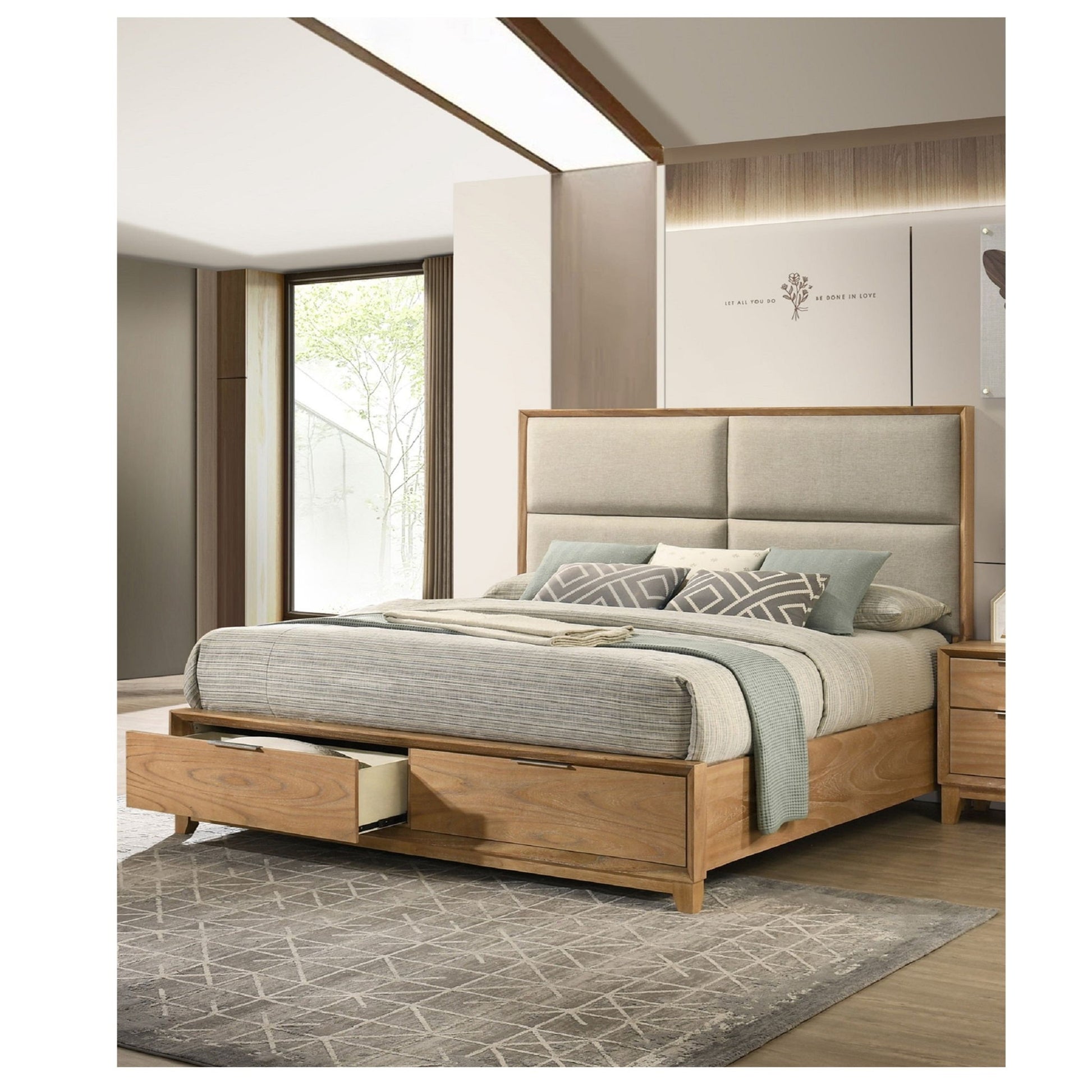 King Storage Platform Bed With Headboard - Natural Wood