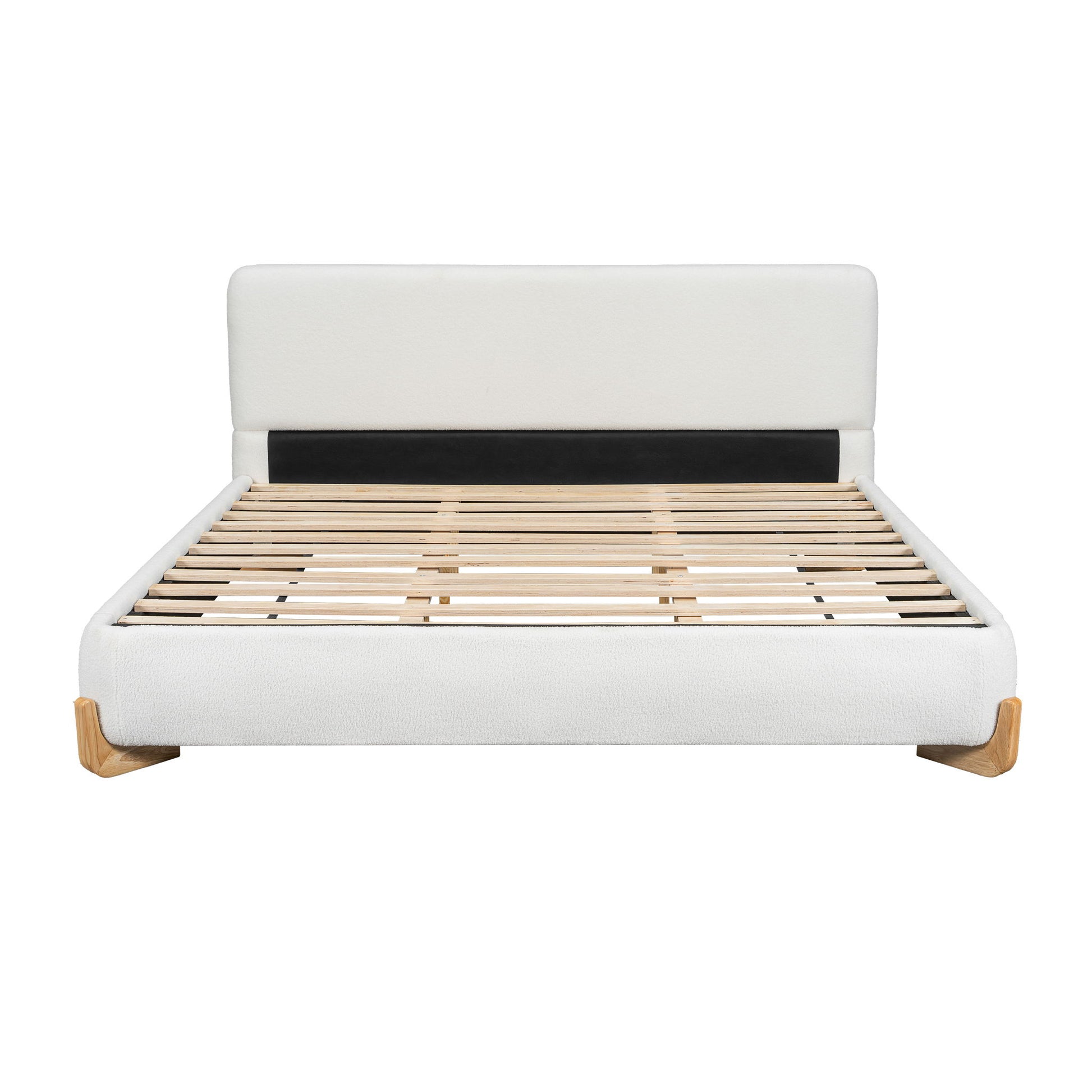 Elegant Boucle Upholstered Bed With Solid Wood Feet