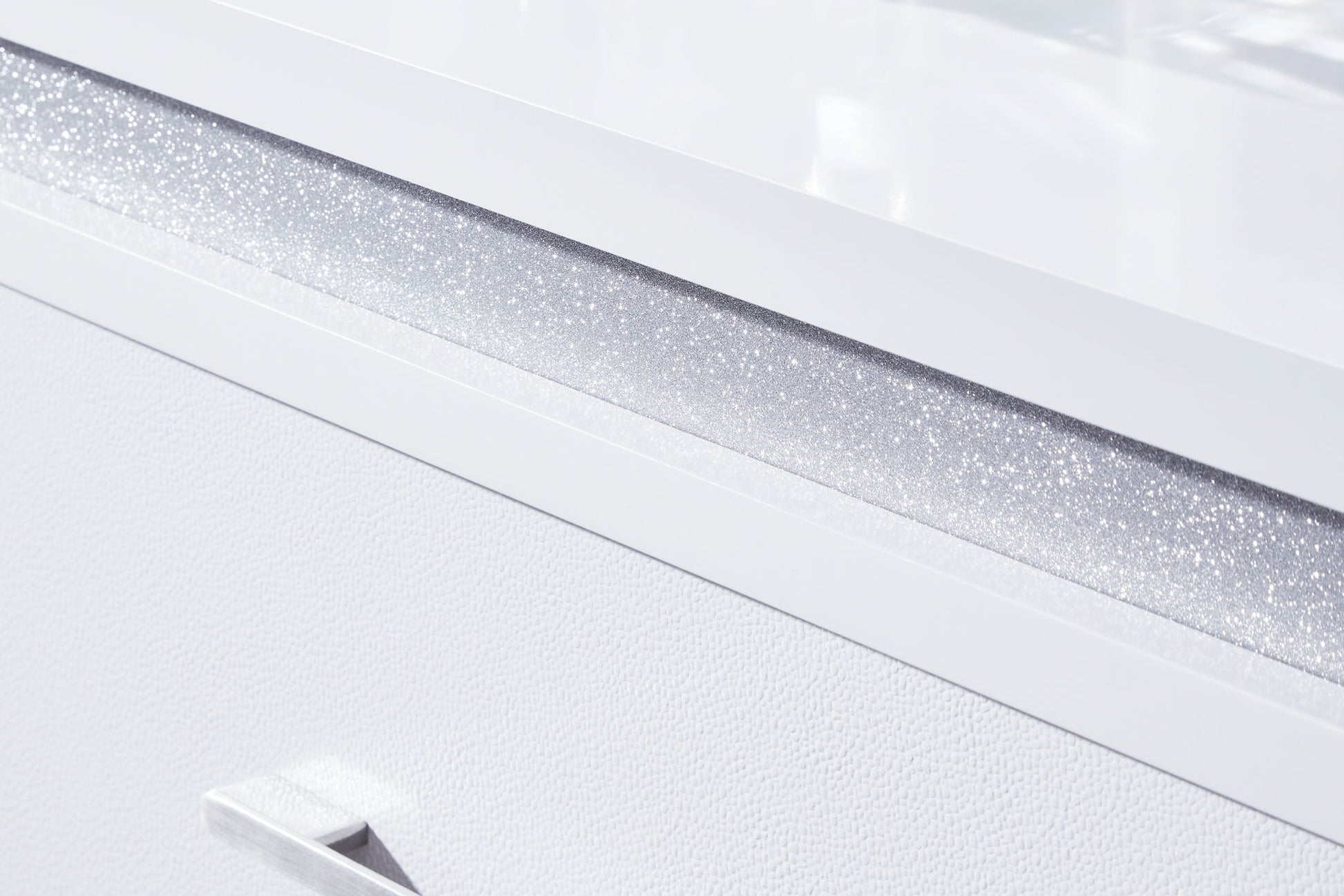 This nightstand is a showstopper, bringing a touch of modern glamour to your sanctuary. A sleek white finish and inset glitter accents create a sophisticated feel, while spacious drawers provide practical storage. It’s a simply stunning way to achieve the bedroom of your dreams.