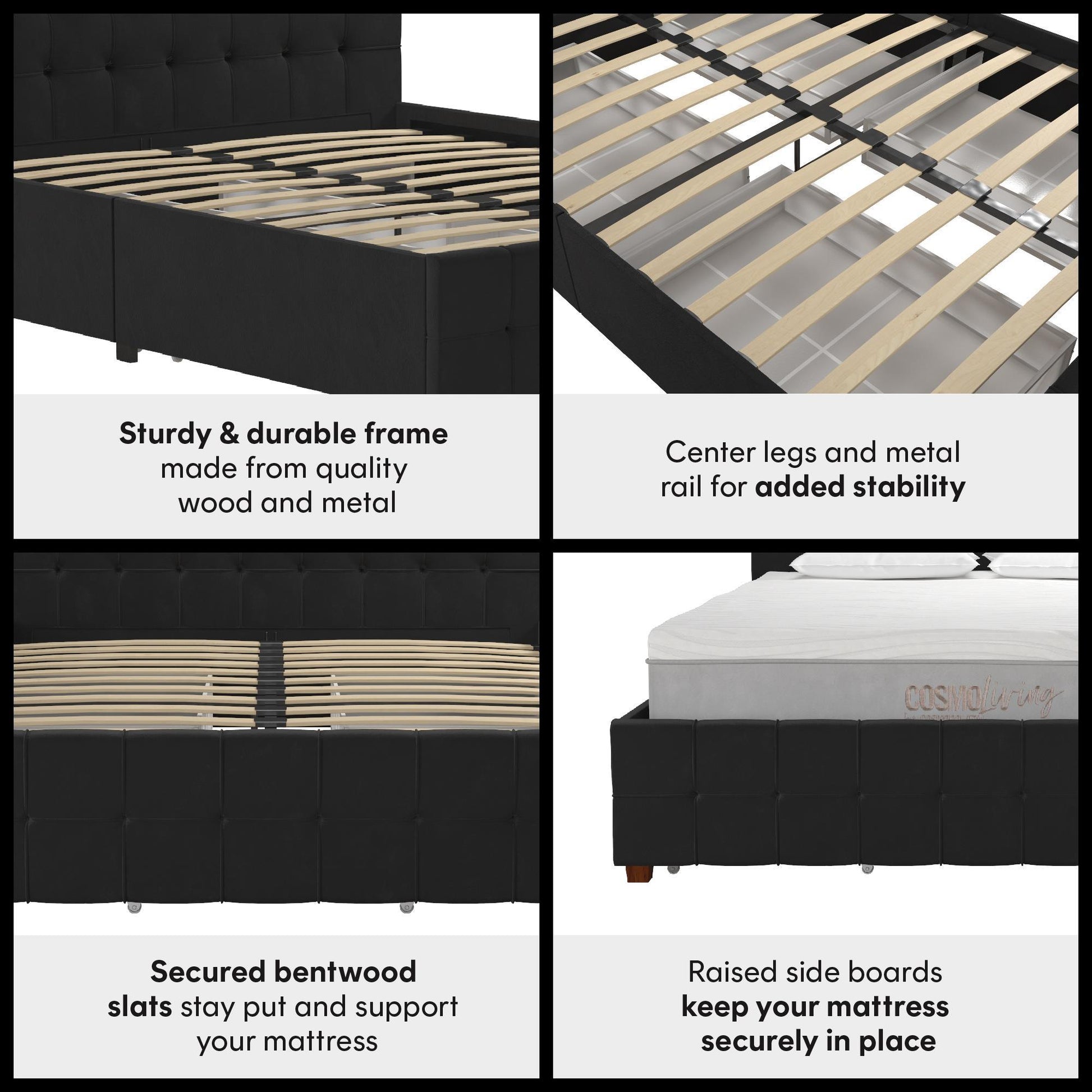 - Durable Construction: Solid wooden frame with metal side rails and reinforced slats