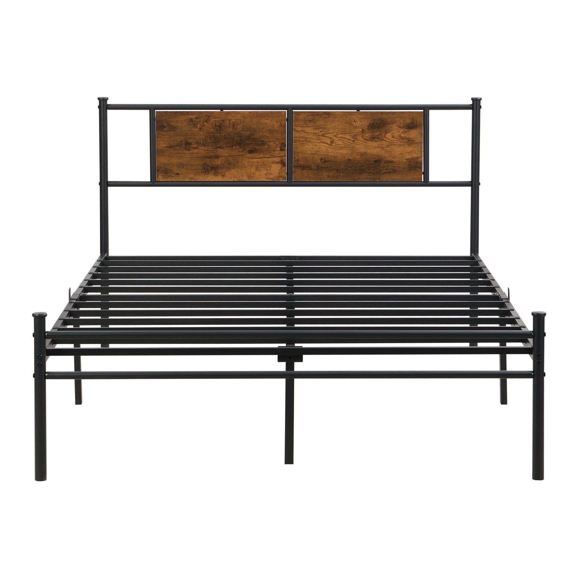 Queen Size Modern Metal Bedframe With Headboard, Durable Steel Structure - Black / Brown