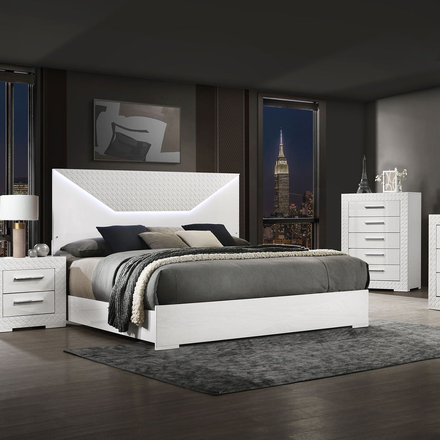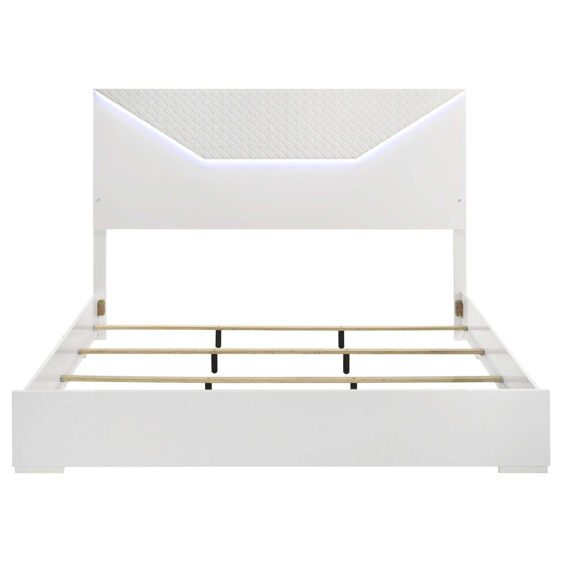 Pierce - Queen Panel Bed With LED Headboard Design - Gloss White