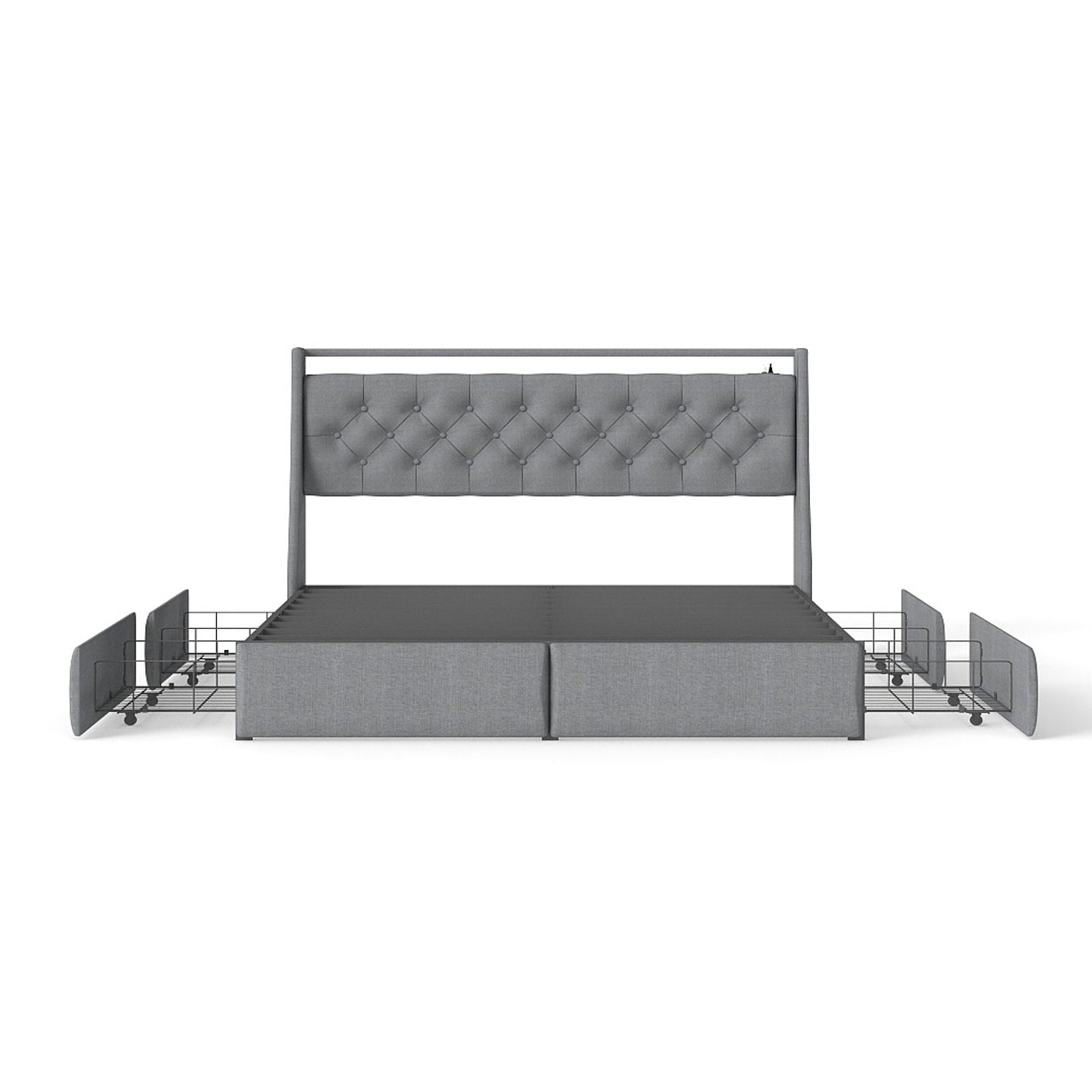 - Multi-Functional Storage: Features 4 sliding drawers and a two-tier headboard shelf to organize quilts, clothes, and electronics efficiently.