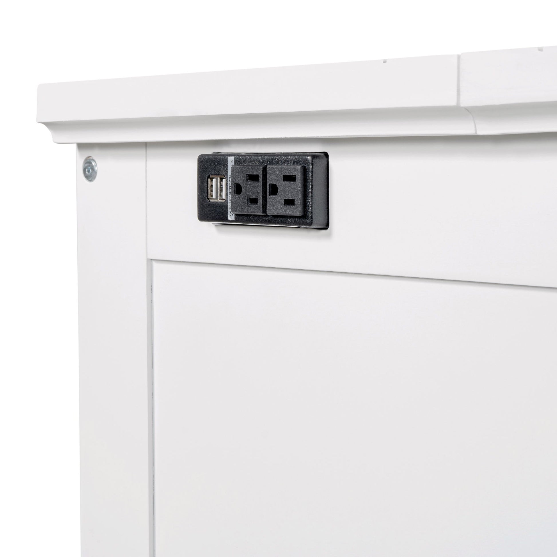 Queen Solid Pine Murphy Bed Chest Cube Cabinet Bed With Charging Station And Large Storage Drawer For Home Office Or Small Room - White