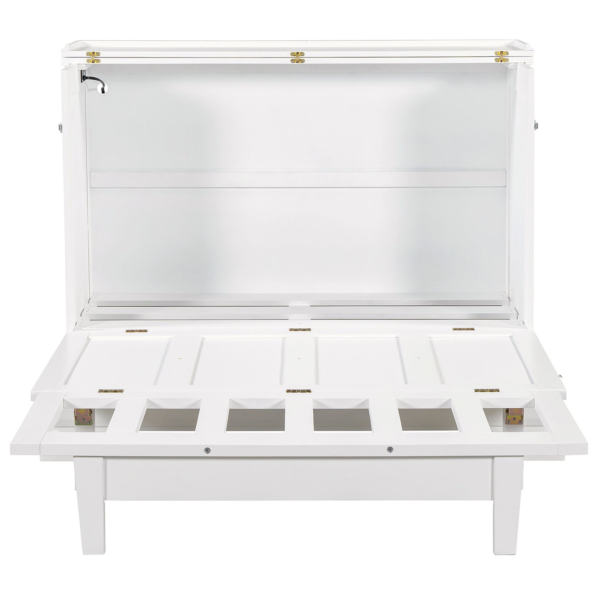 Full Solid Pine Murphy Bed Chest Cube Cabinet Bed With Charging Station And Large Storage Drawer For Home Office Or Small Room - White