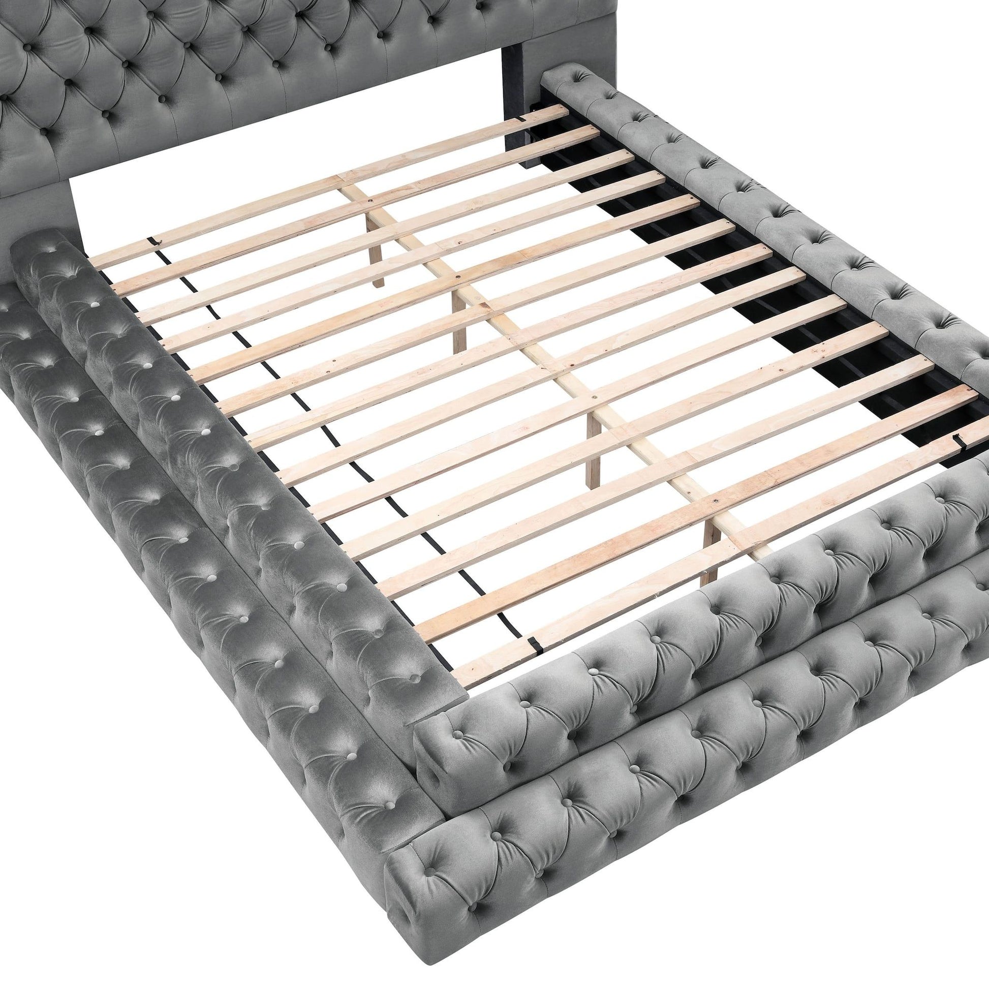 Queen Size Bed Upholstered Platform Bed With Tufted Oversized Headboard - Gray