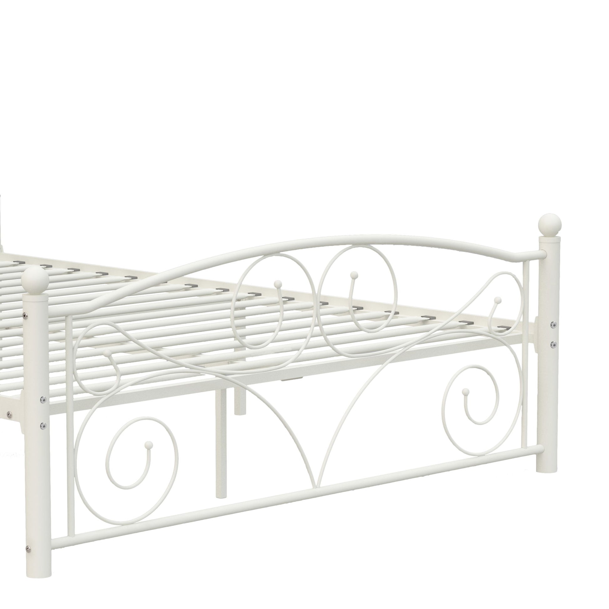 Full Unique Flower Sturdy System Metal Bed Frame With Headboard And Footboard - White