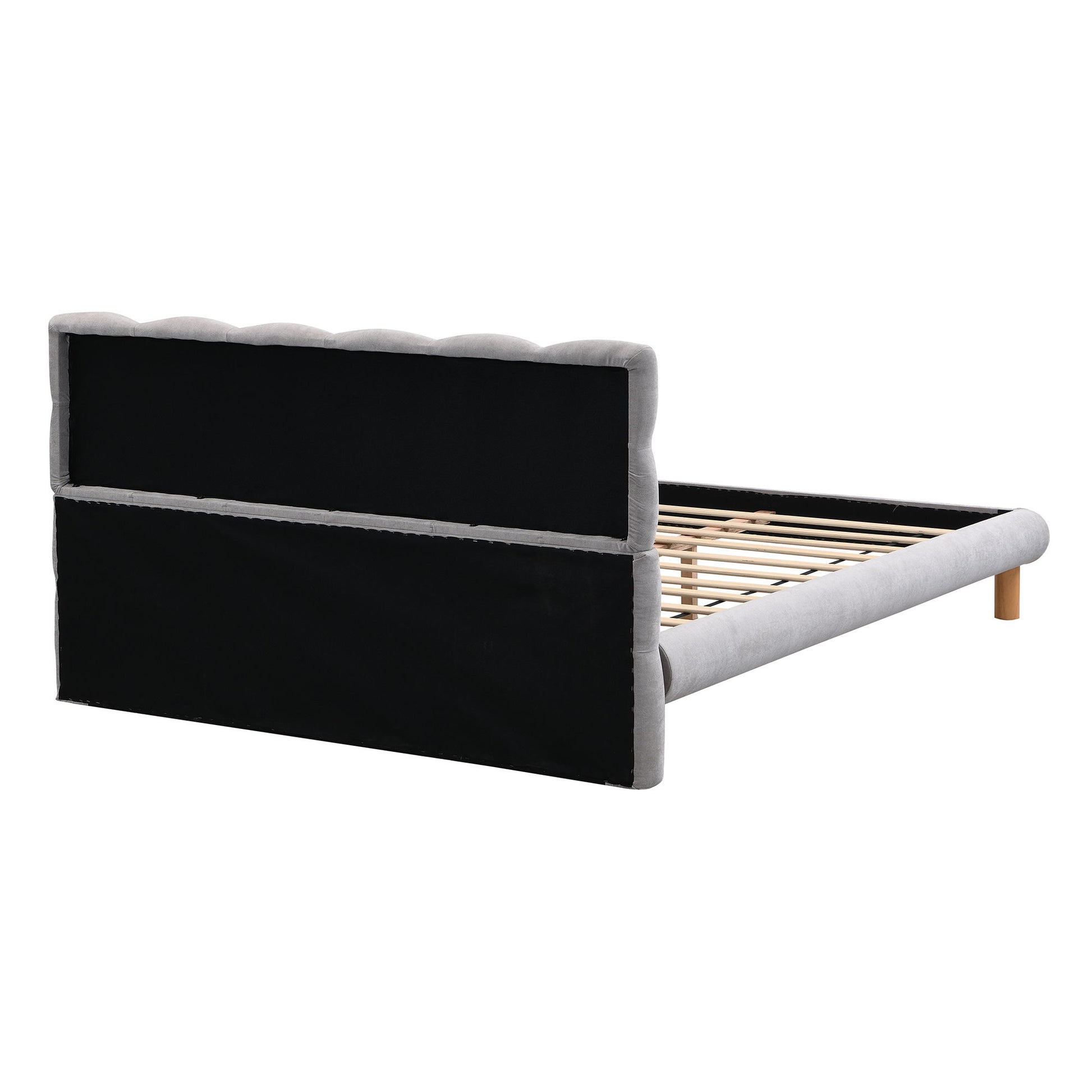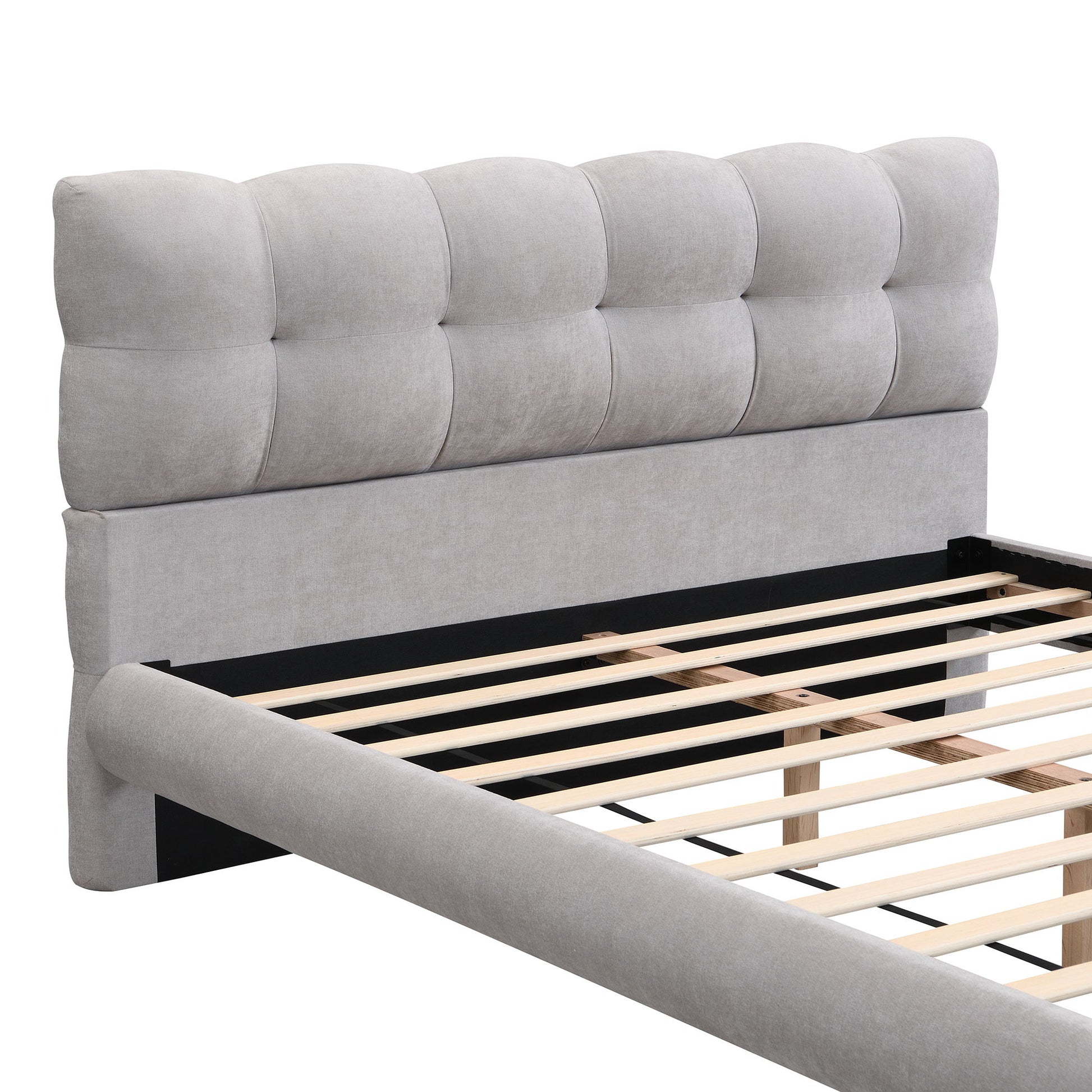 Queen Upholstered Platform Bed Frame With Cookie Shaped Headboard - Gray